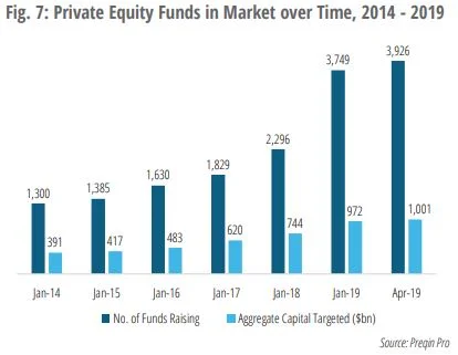The charts below provide a glimpse of capital raising activity. The number of funds looking to raise capital continues to increase but the target capital amount is but inching upwards. Dry powder levels have also continue to rise. [Final thought]